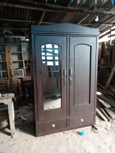 Simple but modern durable daraj with good looks and just as good functionality. Mirror on one side, drawers inside with locks.
