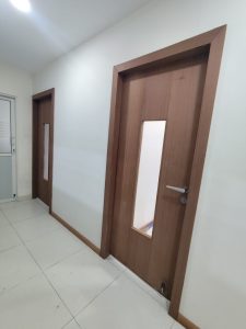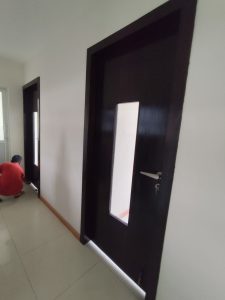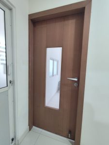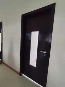 Plywood door with formica pasting on both sides. Includes handles, lock, door-stopper.