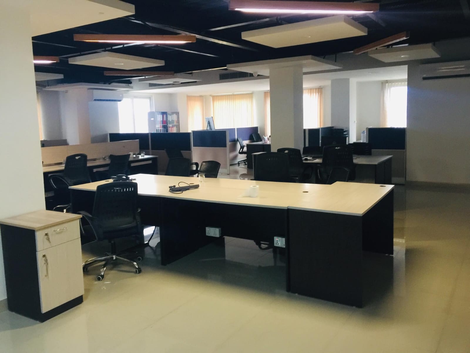 Sabhyata International completed comprehensive office works, including civil modifications, custom furniture and furnishings, electrical and networking setup, plumbing, and HVAC installation, ensuring a fully functional and modern workspace.