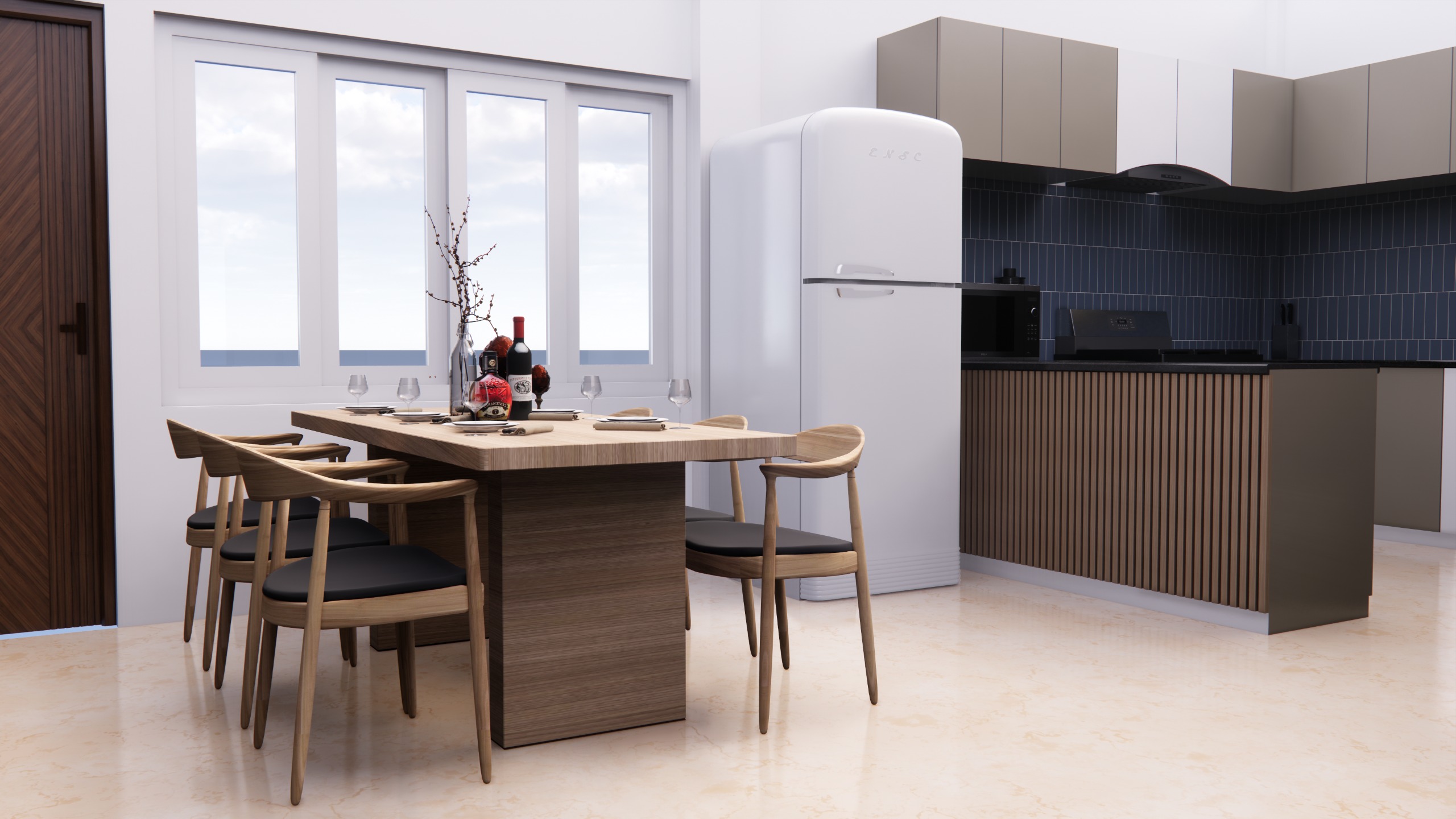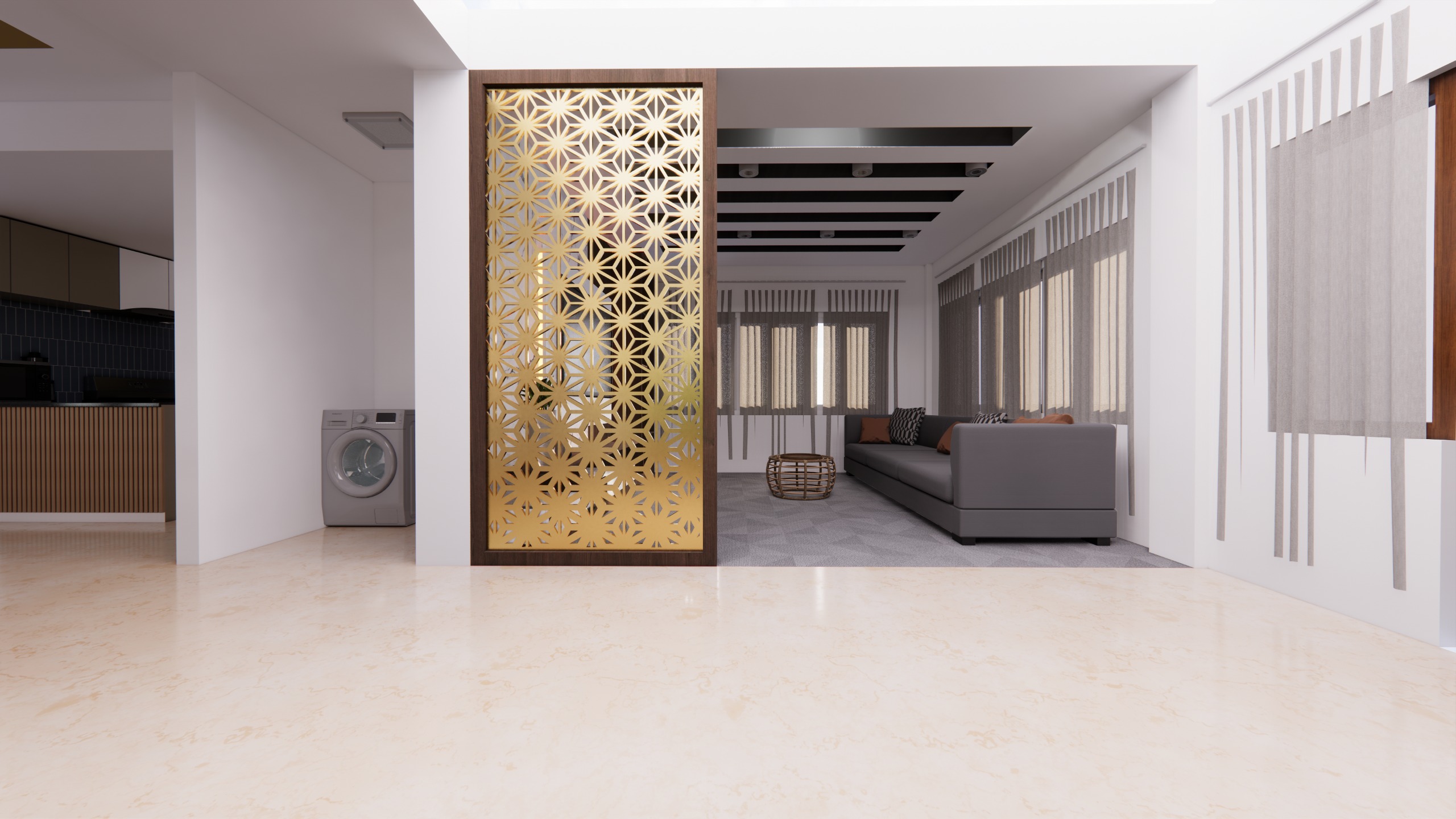 Full interior works include all furniture, floors, ceilings, walls and other accessories. Modern design with clean finish and sharp look. Rooms like lobby, living room, kitchen, bedrooms, bathrooms etc. were fully furnished by furniture and materials made in our own factory.