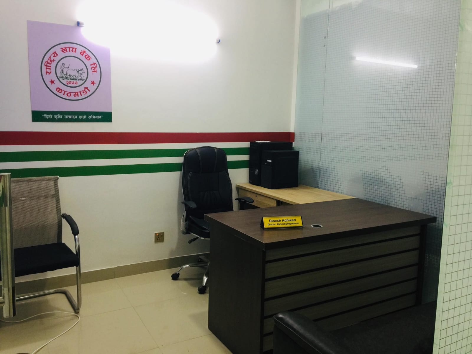 We , Sabhyata International Pvt. Ltd. ,successfully completed an interior renovation project for Rastriya Khadya Bank, covering essential upgrades such as electrical and AC installations, glass partitioning, painting, and furniture and furnishings. Our team implemented energy-efficient electrical and HVAC systems, installed custom glass partitions for functional and sound-insulated spaces, and used eco-friendly paints in a refined color palette. We also provided ergonomic furniture tailored to workspace needs, along with modern flooring and ceiling installations, creating a professional and welcoming environment that aligns perfectly with Rastriya Khadya Bank’s functional and aesthetic requirements.