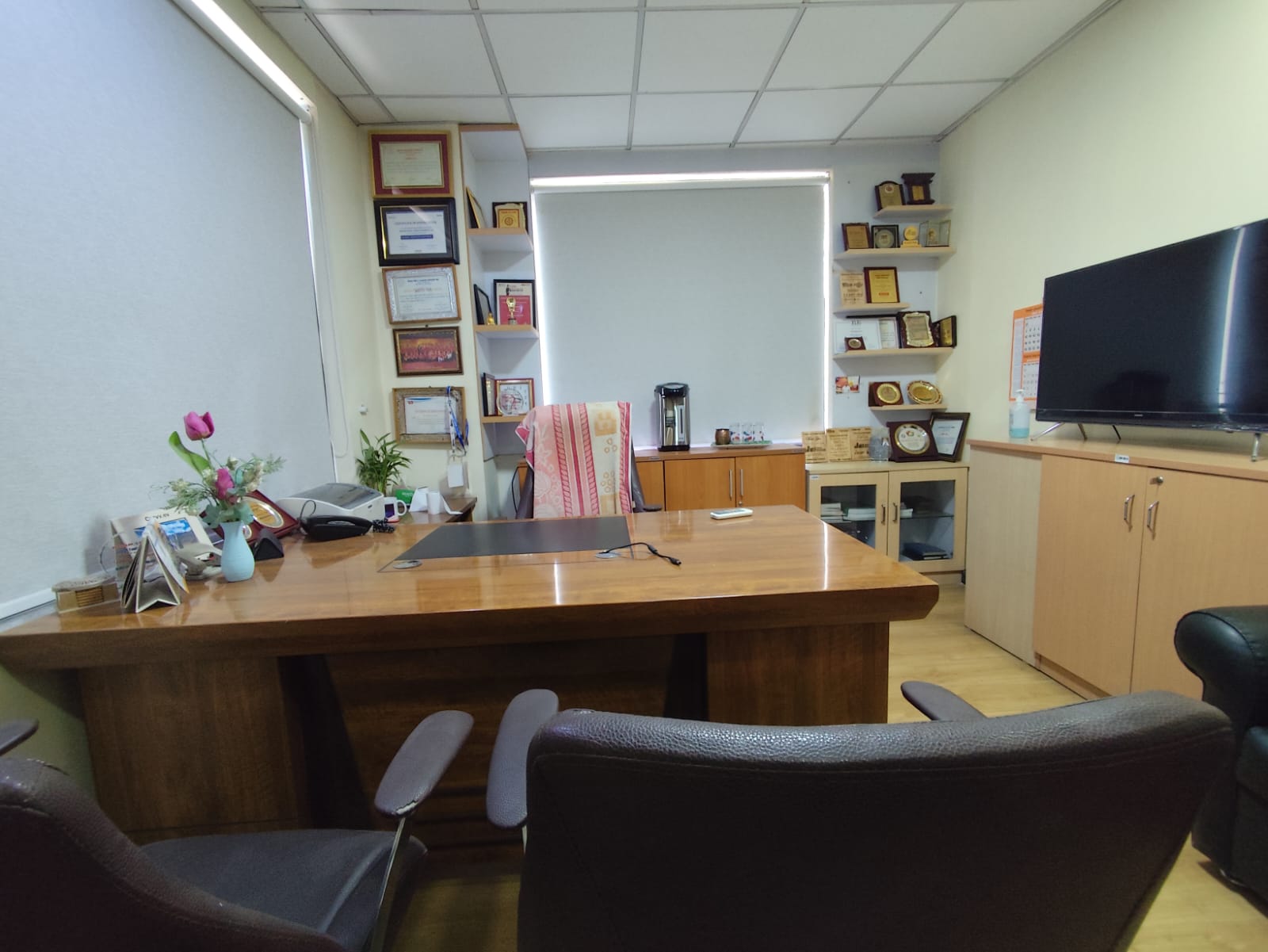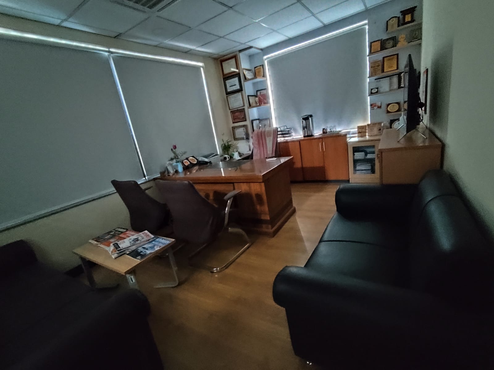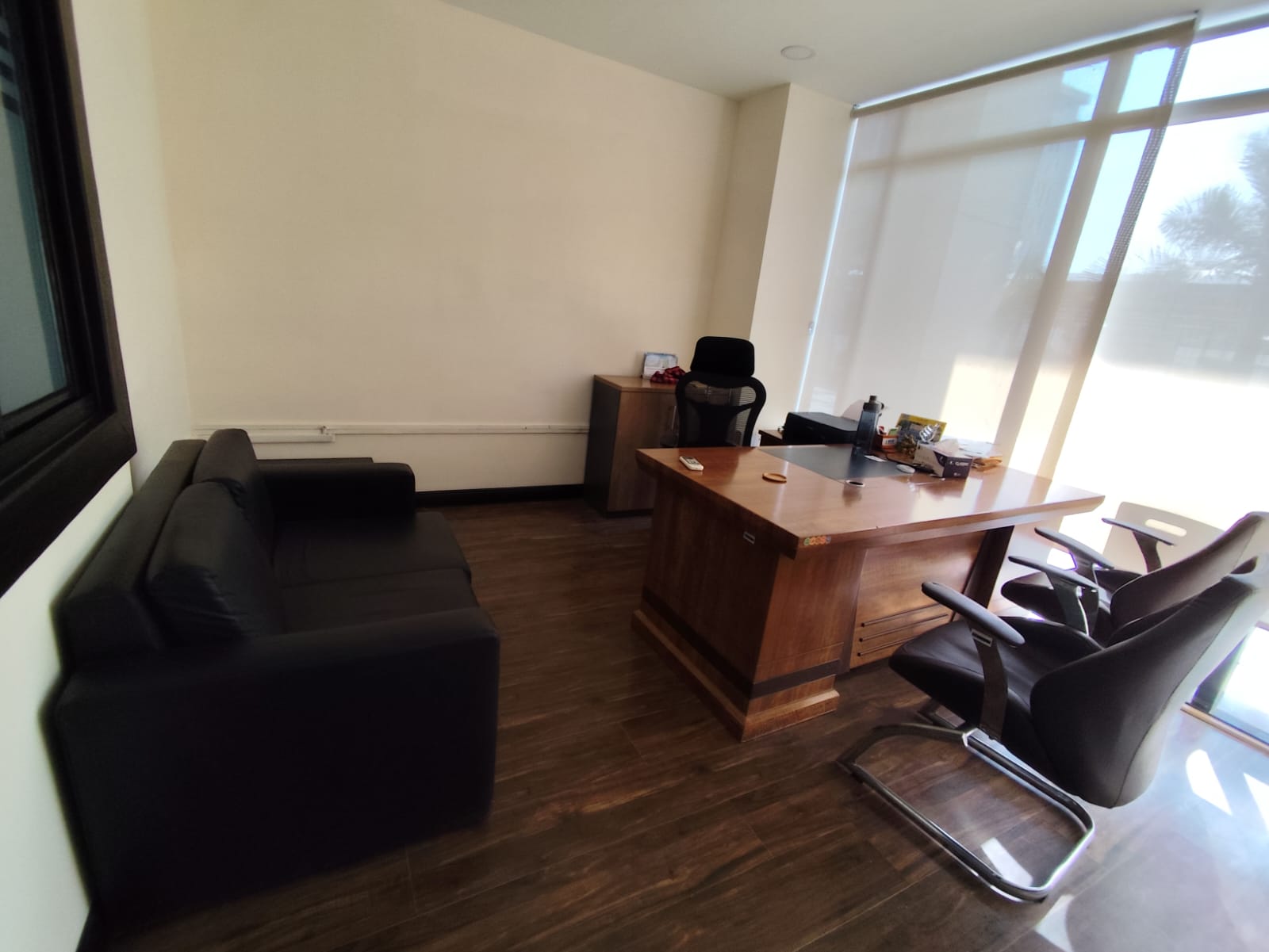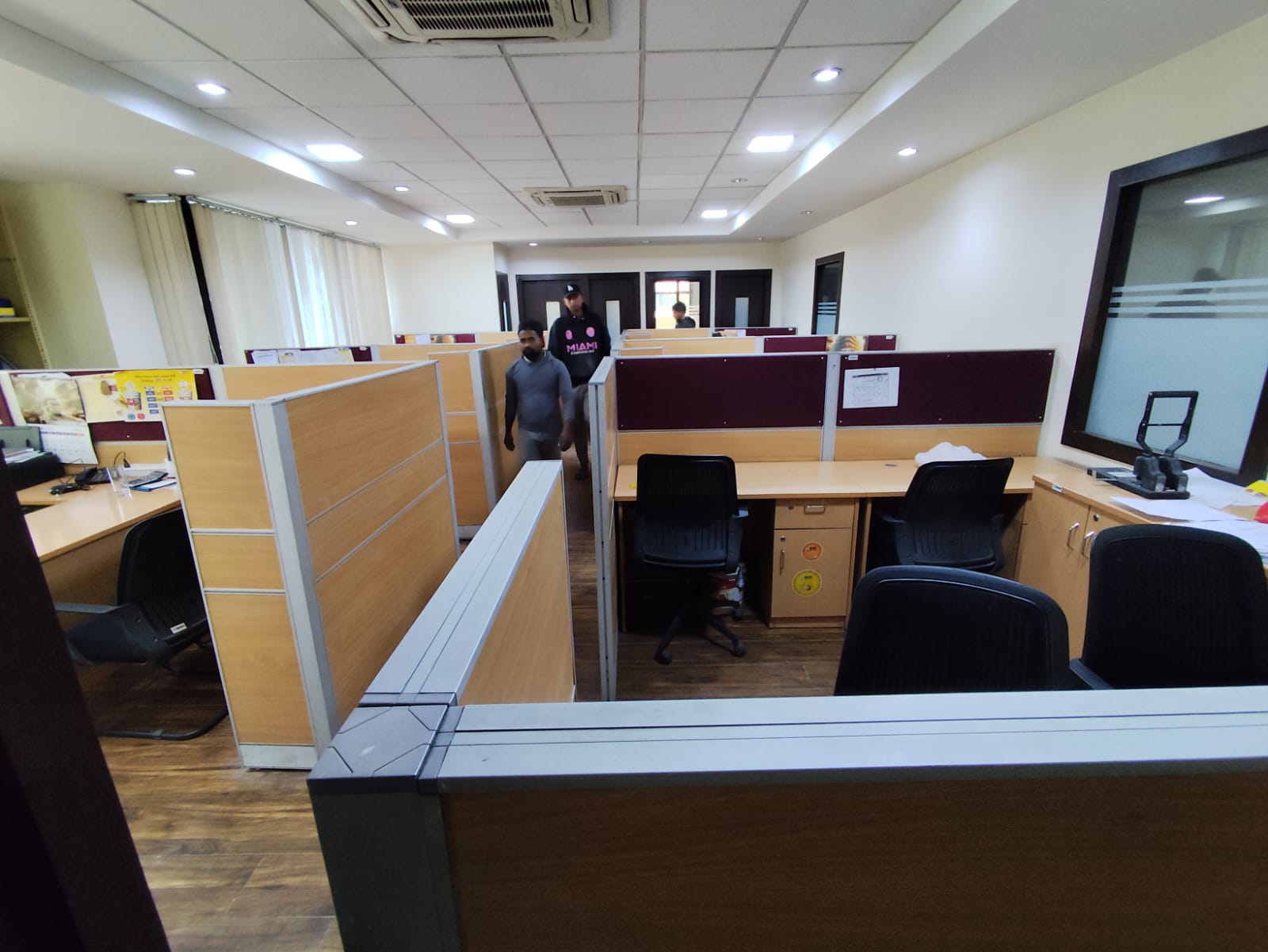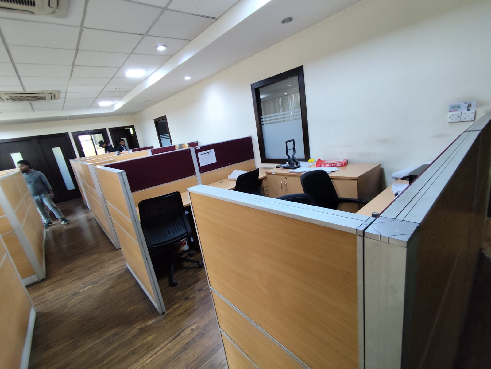 Sabhyata International completed comprehensive office works, including civil modifications, custom furniture and furnishings, electrical and networking setup, blinds installation, false ceiling, flooring, parqueting installation, ensuring a fully functional and modern workspace.